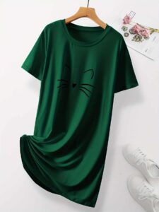 نايت شيرت قطن نص كم استريتش بطبعه -اخضر