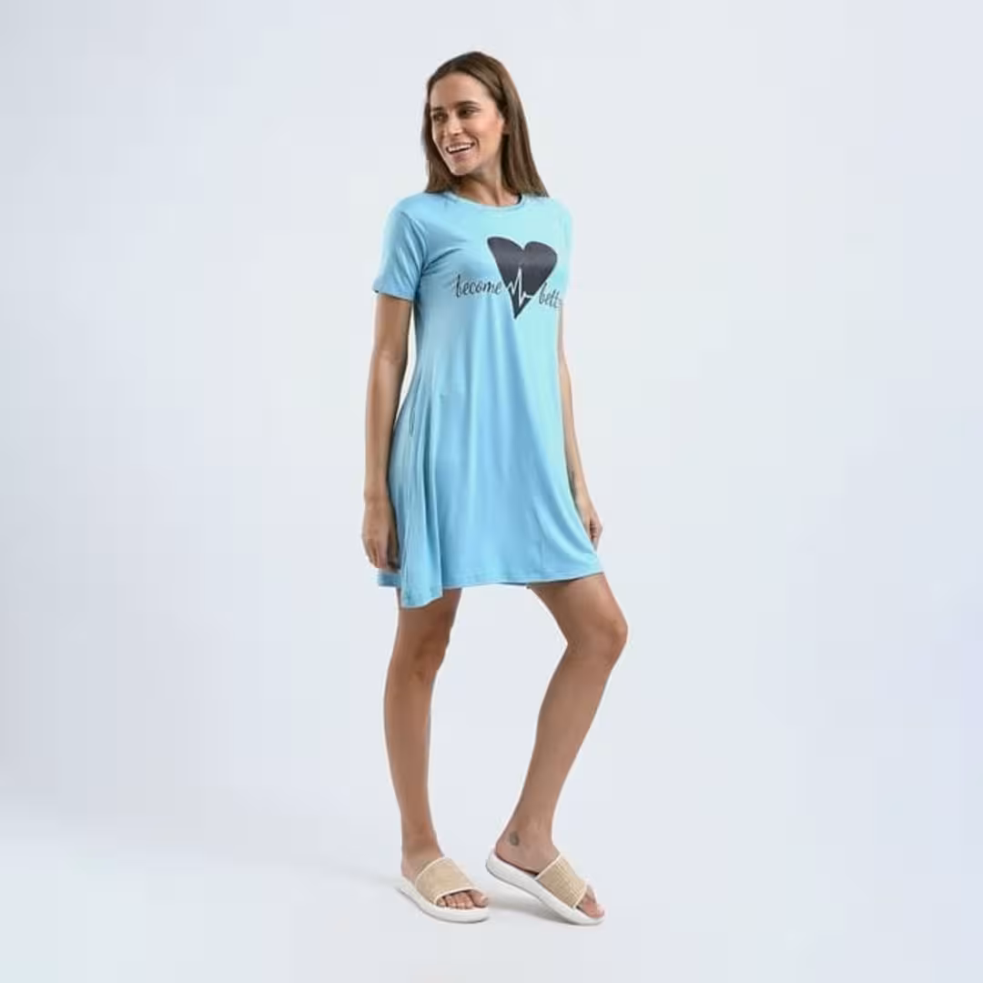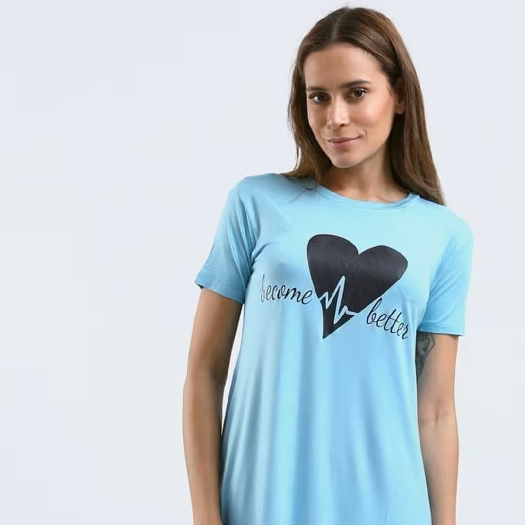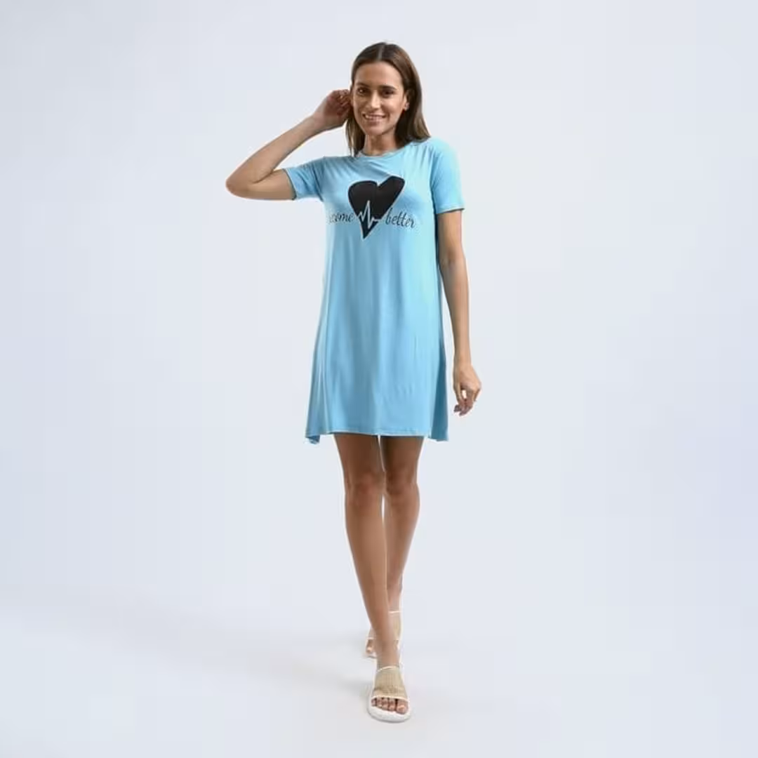 نايت شيرت قطن نص كم استريتش بطبعه -بيبي بلو